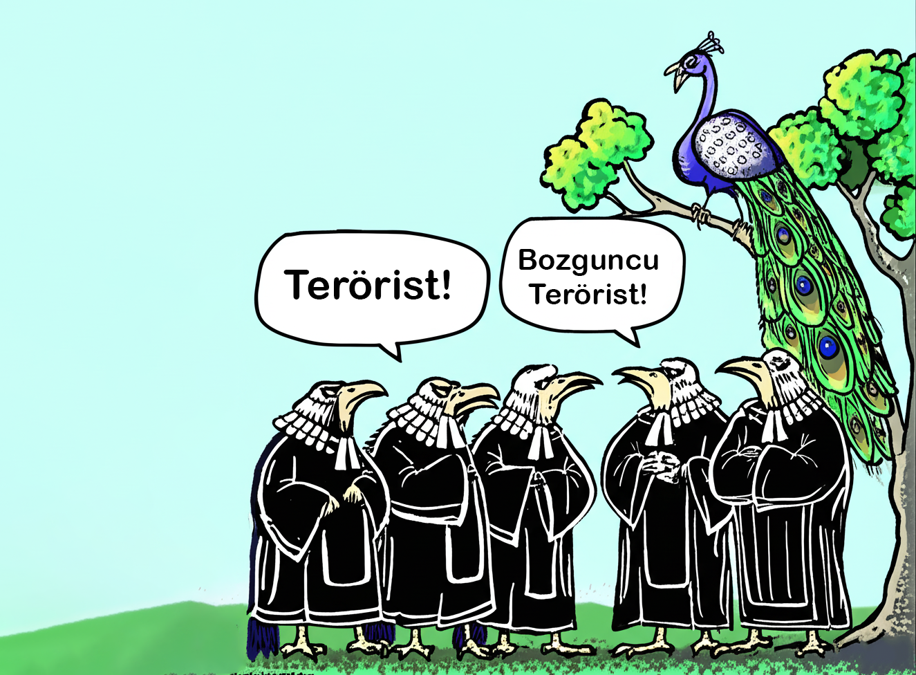 (𝗞𝗮𝗽𝗸𝗮𝗿𝗮 bir gecenin ertesinde 𝗸𝗮𝗿𝗮𝗰𝘂̈𝗯𝗯𝗲𝗹𝗶 𝗸𝗮𝗿𝗮𝗸𝗮𝗿𝗴𝗮𝗹𝗮𝗿ı𝗻 𝗸𝗮𝗿𝗮𝗱𝗲𝗵𝗹𝗶𝘇𝗹𝗲𝗿𝗱𝗲𝗸𝗶 halleri) ***𝗞𝗮𝗿𝗮𝘃𝗶𝗰𝗱𝗮𝗻𝗹𝗮𝗿ı𝗻ı örten 𝗸𝗮𝗿𝗮𝗰𝘂̈𝗯𝗯𝗲𝗹𝗲𝗿𝗶𝗻𝗶 kuşanıp, toplaştıkarakargalar, bir 𝗸𝗮𝗿𝗮𝗴𝗲𝗰𝗲𝗻𝗶𝗻 ertesinde;𝗞𝗮𝗿𝗮𝗸𝗼𝗻𝗰𝗼𝗹𝗼𝘀 başkanları 𝗸𝗮𝗿𝗮𝗰𝘂̈𝗯𝗯𝗲𝘀𝗶𝘆𝗹𝗲 bir perdenin gerisinde, kibir, telaş ve korku vardı sesinde, 𝗞𝗮𝗿𝗮𝗱𝗲𝗵𝗹𝗶𝘇𝗹𝗲𝗿𝗱𝗲𝗻 aldığı buyruğu duyurdu:“Tavuskuşlarının hepsi bozguncu, terörist!”...