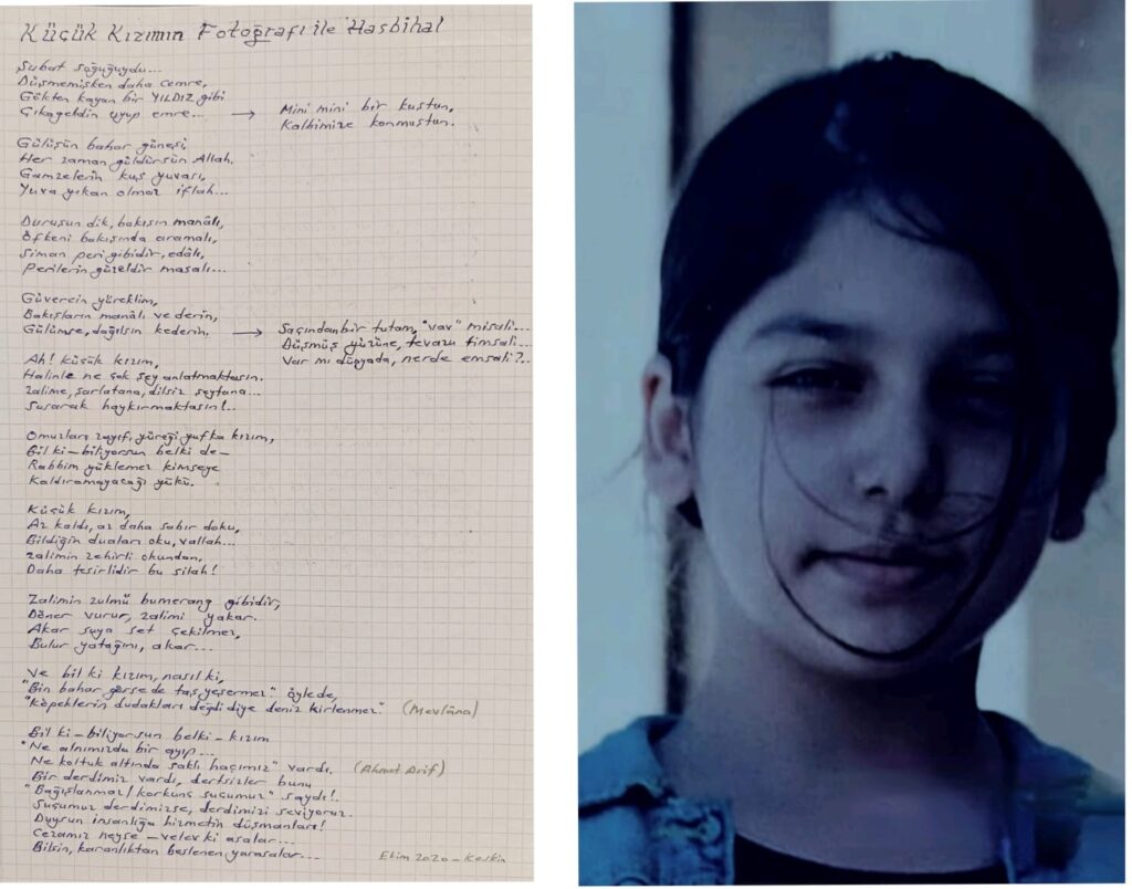 Şubat soğuğuydu... Düşmemişken daha cemre, Gökten kayan YILDIZ gibi Çıkageldin uyup emre. "Mini mini bir kuştun, Kalbimize konmuştun." Gülüşün bahar güneşi, Her zaman güldürsün Allah. Gamzelerin kuş yuvası, Yuva yıkan olmaz iflah... Duruşun dik, bakışın manâlı, Öfkeni bakışında aramalı, Simân peri gibidir edâlı, Perilerin güzeldir masalı... Güvercin yüreklim, Bakışların manâlı ve derin, Gülümse, dağılsın kederin. Saçından bir tutam, "Vav" misali... Düşmüş yüzüne, tevazu timsali... Var mı dünyada, nerede emsali?.. Ah! Küçük kızım, Halinle ne çok şey anlatmaktasın. Zalime, şarlatana, dilsiz şeytana... Susarak haykırmaktasın! Omuzları zayıf, yüreği yufka kızım, Bil ki -biliyorsun belki de- Rabbim yüklemez kimseye kaldıramayacağı yükü. Küçük kızım, Az kaldı, az daha sabır doku, Bildiğin duaları oku, vallah... Zalimin zehirli okundan Daha tesirlidir bu silah!.. Zalimin zulmü bumerang gibidir, Döner vurur, zalimi yakar. Akarsuya set çekilmez, Bulur yatağını, akar... Ve bil ki kızım, nasıl ki "Bin bahar görse de taş yeşermez." Öyle de "köpeklerin dudakları değdi diye deniz kirlenmez." Bil ki -biliyorsun belki kızım- "Ne Alnımızda bir ayıp... Ne koltuk altında saklı haçımız var"dı... Bir derdimiz vardı, dertsizler bunu Bağışlanmaz, korkunç suçumuz saydı! Duysun insanlığa hizmetin düşmanları, Cezamız neyse -velev ki asalar- Bilsin karanlıktan beslenen Yarasa'lar: Suçumuz derdimizse, "derdimizi seviyoruz." (Ekim 2020, Keskin)