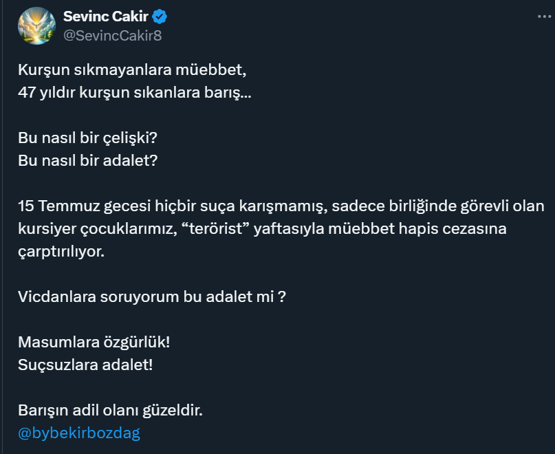 Bu noktada iktidarı anlayabilirim, açıkçası burada DEM Parti’nin tutumu daha önemlidir. salt kendisi için, kendi mahallesi için süreci yürütürlerse, hem yazık etmiş hem de ayıp etmiş olurlar. Bir anlamda feleğin sillesine, her türlü ayrımcılığa, husumete maruz kalmış bir partinin bu süreci sadece kendisi için yönetmesi, her şeyden önce kendisine de zarar verir. Tekrar ediyorum: İktidar bileşenleri, içeride ve dışarıda çok sıkıştı, varlığını sürdürmek için bu tür “atraksiyon”lara girişmektedirler. Zaten dış dinamikler (Suriye ve BOP) çerçevesinde olacaklar istemeseler de olacaktı. Bu aşamada DEM Parti’nin kendi menfaatlerini gözetmesini yadırgamıyorum. Fakat sadece kendi menfaatlerini gözetip kendileri gibi mağdur edilen, zulmedilen, ötekileştirilen diğer kesimleri göz ardı ederlerse bütün bu zulümlere ortak olmuş olurlar. (“Tarihi bir konuşma yapacak” denilen 12 Temmuz’da Cumhurbaşkanı Erdoğan’ın: “AK Parti, MHP ve DEM, biz en azından üçlü olarak, bu yolu birlikte yürümeye karar verdik.” demesi için bakalım ne söylenecek?)